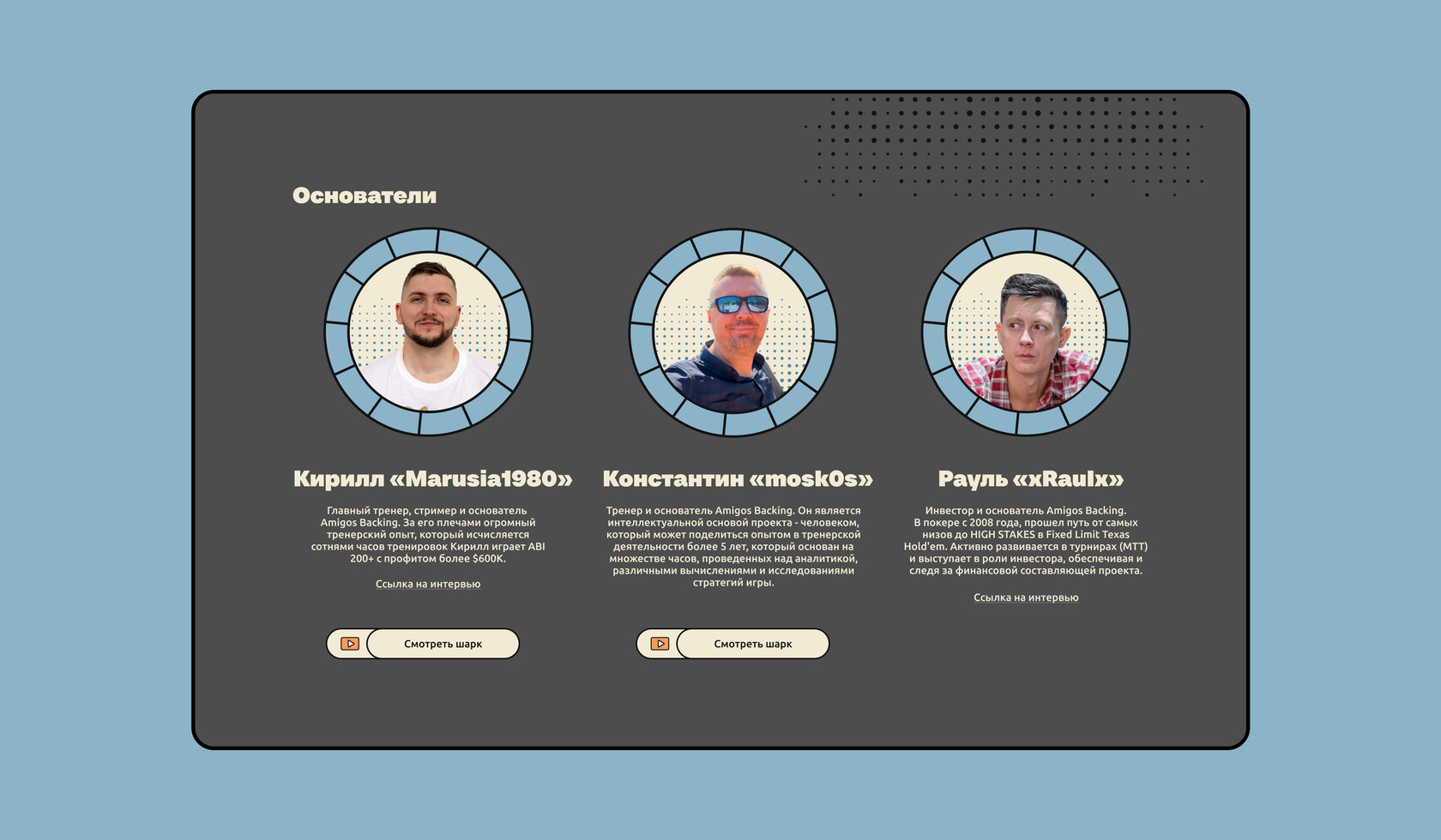 Amigos Backing — лицей турнирного покера с профессиональным подходом к обучению, который строится на основе индивидуальных качеств игрока и современных тенденций в покере. Дружная командная атмосфера, индивидуальные и групповые тренировки, тренировки по работе со специализированными программами, тренировки с ментал-коучем и многое другое — все возможности для профессионального роста игроков в покер вы найдете в Amigos Backing.