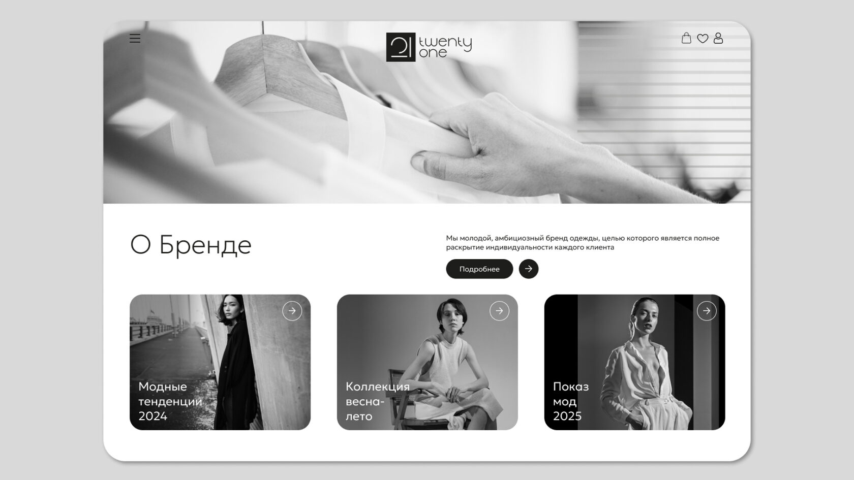 21twentyone — молодой бренд женской одежды, вобравший в себя лучшие практики уличной моды. Бренд представлен на мультибрендовых онлайн-площадках и маркетплейсах: оставаясь доступным для массового покупателя, 21twentyone дорожит своей идентичностью и концептуальной целостностью.