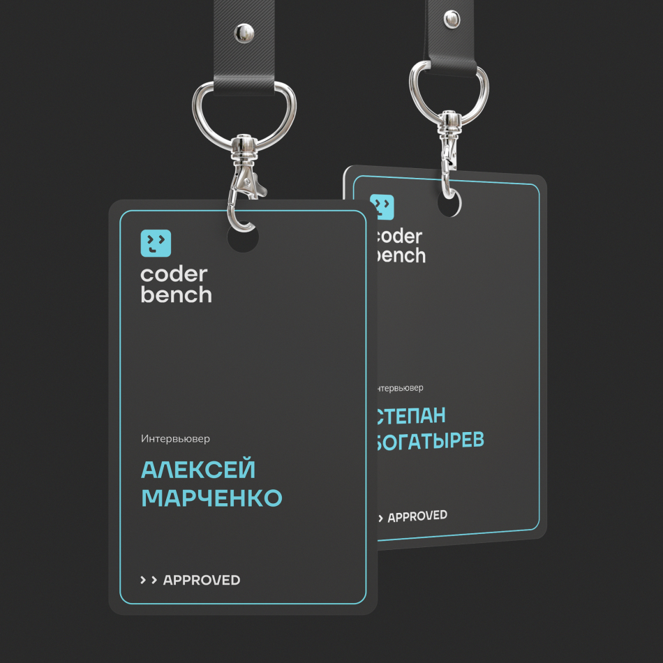 Идея: «Фокус на лучших» — Cервис работает как механизм фокусировки, выделяющий «лучшего кандидата» из большинства. Поэтому в логотипе ключевым элементом является персонаж-кандидат, который расположен между «coder» и «bench», что символизирует его связь с сервисом и работодателем.